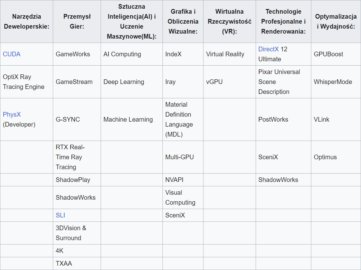Współczesne połączenia GPU obejmują PCIe, NVLink, NV-SLI, NVSwitch oraz GPUDirect.